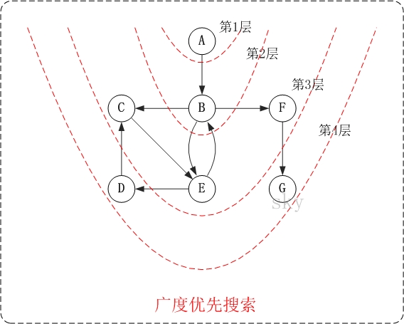 它的思想是:从图中某顶点v出发,在访问了v之后依次访问v的各个未曾访问过的邻接点,然后分别从这些邻接点出发依次访问它们的邻接点,并使得“先被访问的顶点的邻接点先于后被访问的顶点的邻接点被访问,直至图中所有已被访问的顶点的邻接点都被访问到。如果此时图中尚有顶点未被访问,则需要另选一个未曾被访问过的顶点作为新的起始点,重复上述过程,直至图中所有顶点都被访问到为止。
