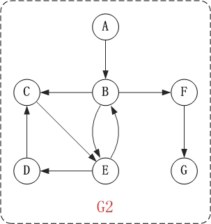 在访问完C,E,F之后,再依次访问它们的出边的另一个顶点。还是按照C,E,F的顺序访问,C的已经全部访问过了,那么就只剩下E,F;先访问E的邻接点D,再访问F的邻接点G。